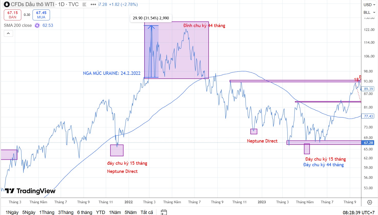Cuối cùng, ngay cả với giá dầu, diễn biến từ cuộc chiến Nga-Ukraine cho thấy sau khi tăng sốc 31% vào ngày nổ súng, giá dầu đã nhanh chóng lập đỉnh và bước vào chu kỳ giảm dài hạn.