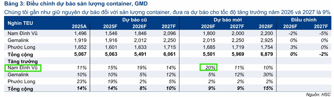 HSC dự báo lợi nhuận thuần của GMD sẽ tăng trưởng 22% trong năm 2026, đạt mức 2,045 tỷ đồng.