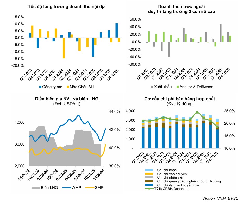 Bên cạnh đó, các thị trường nước ngoài như Campuchia (thông qua Angkormilk) và khu vực Trung Đông tiếp tục là “cánh tay nối dài” quan trọng với mức tăng trưởng hai chữ số liên tục trong nhiều quý.