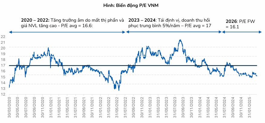 • Triển vọng 2026: Các CTCK dự báo doanh thu Vinamilk đạt 65,500–68,241 tỷ đồng (+3–7% YoY), lợi nhuận sau thuế khoảng 10,000–10,430 tỷ đồng (+6–11% YoY). Biên lợi nhuận gộp dự kiến cải thiện lên >42% nhờ giá sữa bột giảm 12–17%.