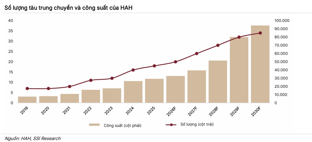 Với tốc độ tăng trưởng công suất kép (CAGR) dự kiến đạt 26.3% mỗi năm trong giai đoạn 5 năm tới, HAH đang ở vị thế thuận lợi để nắm bắt nhu cầu vận tải nội Á đang gia tăng, đặc biệt khi cơ cấu đội tàu thế giới đang quá tập trung vào các tàu siêu lớn mà bỏ ngỏ phân khúc tàu trung chuyển thiết yếu này.