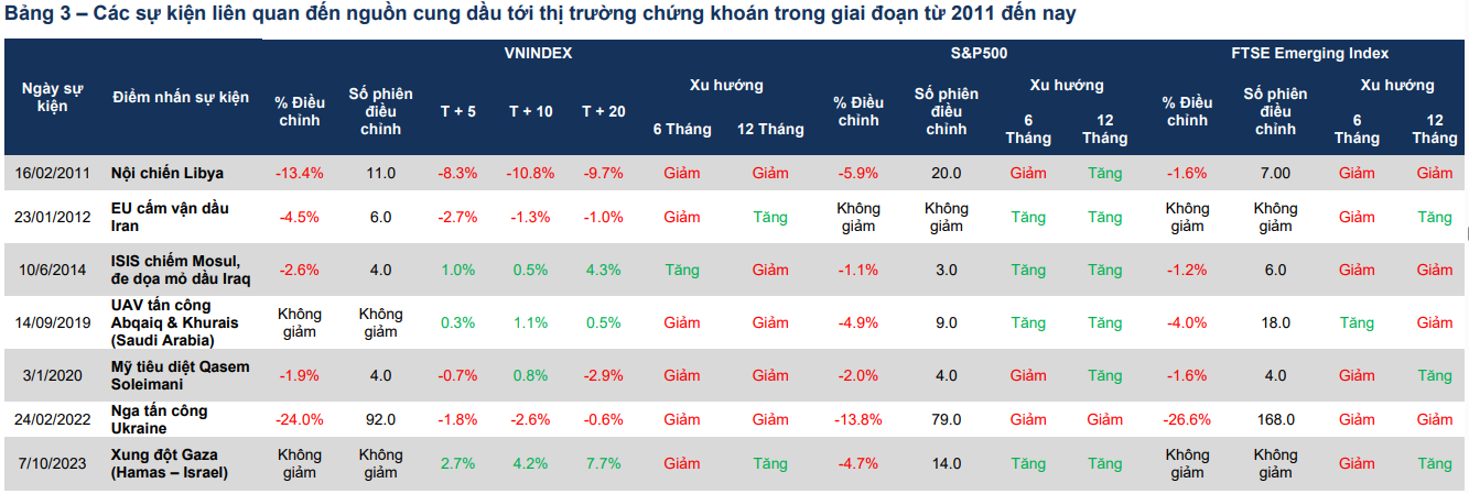 Đối với thị trường Việt Nam, các cú sốc địa chính trị liên quan đến nguồn cung dầu chủ yếu tạo ra tác động tâm lý trong thời gian rất ngắn, thường trong khoảng T+5 đến T+10, với mức điều chỉnh khoảng 1%. So với các thị trường lớn, VN-Index thường phản ứng nhanh khi sự kiện xảy ra nhưng thời gian duy trì tâm lý tiêu cực ngắn hơn, giúp thị trường sớm ổn định trở lại và không làm thay đổi cấu trúc xu hướng.