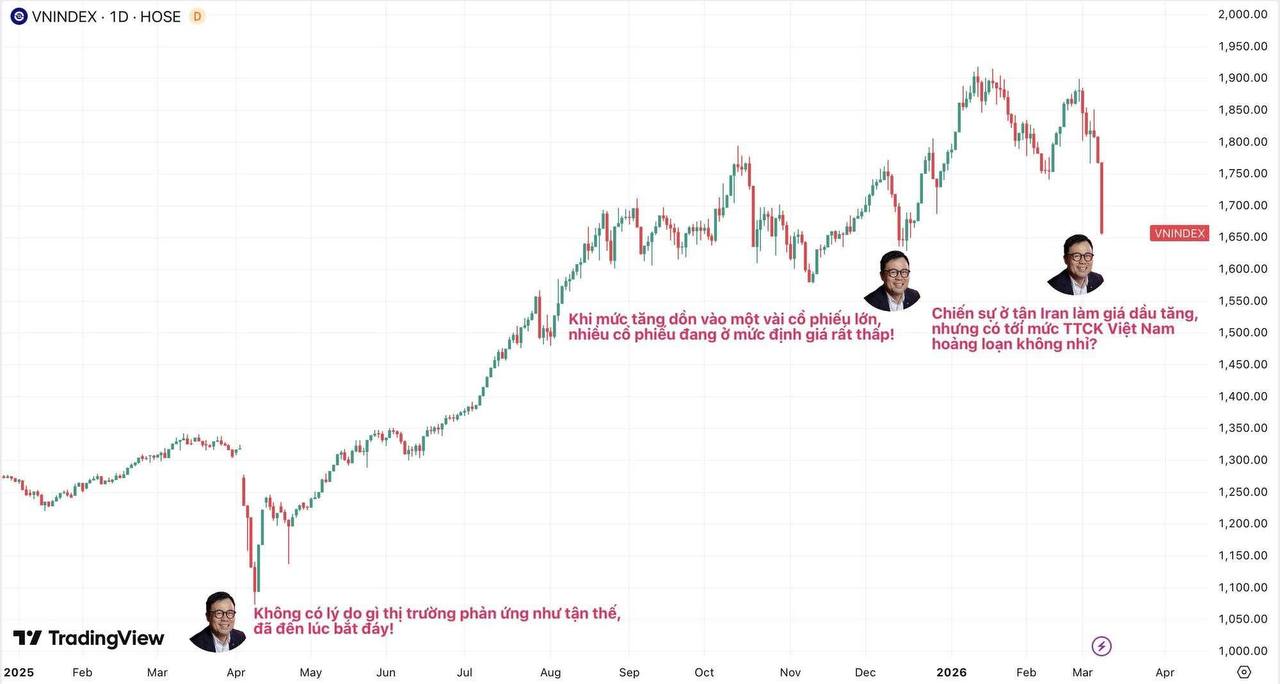 Như mọi khi, sói già (chủ tịch SSI) -Nguyễn Duy Hưng lại lên tiếng đúng thời điểm gay cấn. Tháng 4.2025, và tháng 12.2025 đều trùng với các đáy của TTCK Việt Nam.