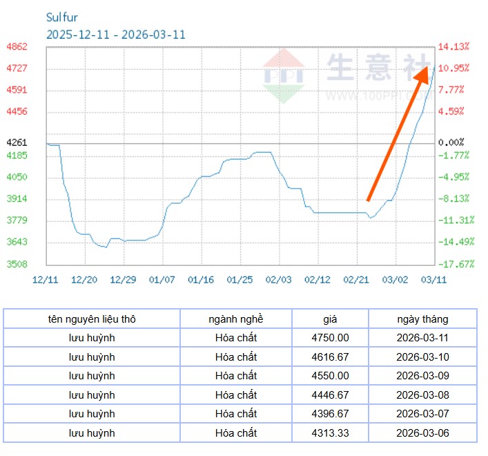 Đối với các doanh nghiệp sản xuất DAP như DDV, việc Việt Nam phải nhập khẩu phần lớn nhu cầu lưu huỳnh từ thị trường thế giới đồng nghĩa với việc chi phí sản xuất sẽ chịu áp lực tăng giá lớn. Đầu tháng 3, VNDirect dự báo giá lưu huỳnh toàn cầu tăng 32% so với cùng kỳ năm 2025, nhưng thực tế sau cuộc chiến Mỹ-Iran, giá lưu huỳnh Trung Quốc đang tăng vọt hơn 20% chỉ trong tháng 3.