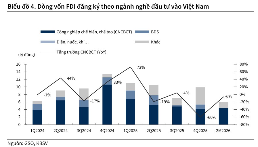 Dòng vốn FDI đăng ký vào Việt Nam, vốn đã có dấu hiệu tạo đáy vào năm 2025, bắt đầu ghi nhận sự cải thiện đáng kể trong quý 1 năm 2026 nhờ xu hướng tái cấu trúc chuỗi cung ứng toàn cầu.