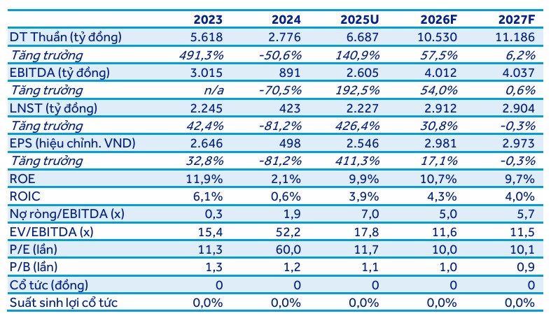 | Chỉ số tài chính | 2024 (Thực tế) | 2025 (Ước tính) | 2026 (Dự báo) | Nhận định |