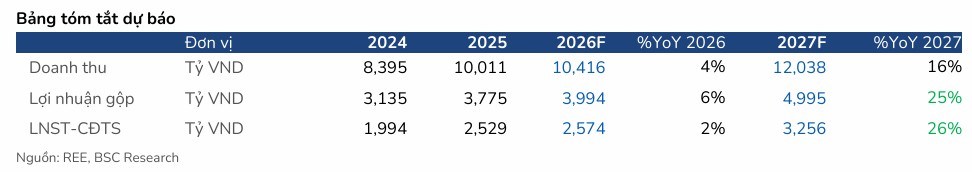 Việc giá dầu duy trì ở mức cao trên 90 USD/thùng có thể khiến lạm phát năm 2026 của Việt Nam chạm ngưỡng 4.5%. Trước kịch bản xung đột Trung Đông kéo dài, BSC dự báo có khả năng lãi suất điều hành sẽ phải tăng thêm từ 0.25% đến 1%. Điều này sẽ trực tiếp làm xói mòn lợi nhuận ròng của REE khi chi phí tài chính (vốn đã đạt 743 tỷ đồng năm 2025) tiếp tục gia tăng.