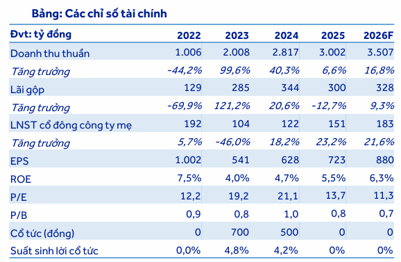 Giá mục tiêu cho cuối năm 2026 được xác lập ở mức 13,700 đồng/cổ phiếu, tương đương với tỷ lệ tăng giá kỳ vọng lên đến 38.3% so với mức giá thị trường hiện tại khoảng 9,900 đồng.