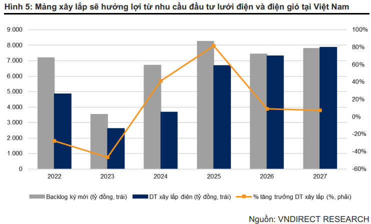 Khác với chu kỳ trước vốn tập trung vào phát triển nguồn điện, giai đoạn hiện tại có sự dịch chuyển rõ rệt sang đầu tư lưới điện và hạ tầng truyền tải. Đây là điểm nghẽn lớn nhất của hệ thống điện trong những năm gần đây, khi nhiều dự án năng lượng tái tạo không thể giải tỏa công suất do thiếu đường dây và trạm biến áp. Việc ưu tiên giải quyết nút thắt này đồng nghĩa với việc khối lượng công việc cho các doanh nghiệp xây lắp điện sẽ tăng mạnh trong nhiều năm tới.