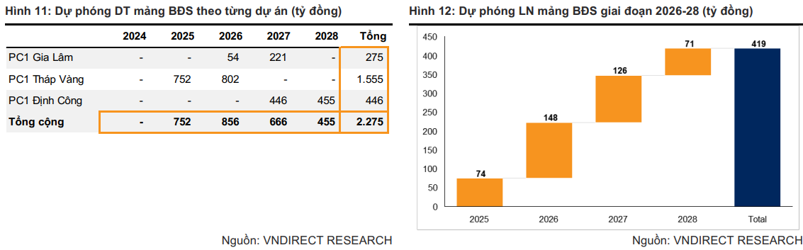 Ở mảng bất động sản, PC1 đang chuyển hướng sang chiến lược đầu tư chọn lọc hơn, thể hiện qua việc thoái vốn khỏi một số dự án và tập trung vào các dự án có khả năng triển khai tốt hơn. Trong năm 2026, nguồn thu chủ yếu vẫn đến từ việc bàn giao phần còn lại của dự án Tháp Vàng.