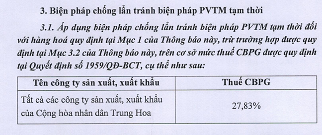 Thị trường thép Việt Nam vừa đón nhận tin đồn quan trọng khi Bộ Công Thương chính thức ban hành mức thuế chống bán phá giá tạm thời đối với sản phẩm thép cuộn cán nóng (HRC) khổ rộng nhập khẩu từ Trung Quốc ở mức 27.83%.