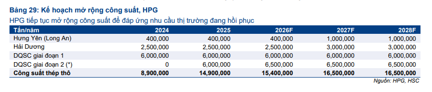 Dự báo sản lượng HRC bứt phá 50% nhờ Dung Quất 2 và biên lợi nhuận gộp duy trì ổn định ở mức 14.2%.