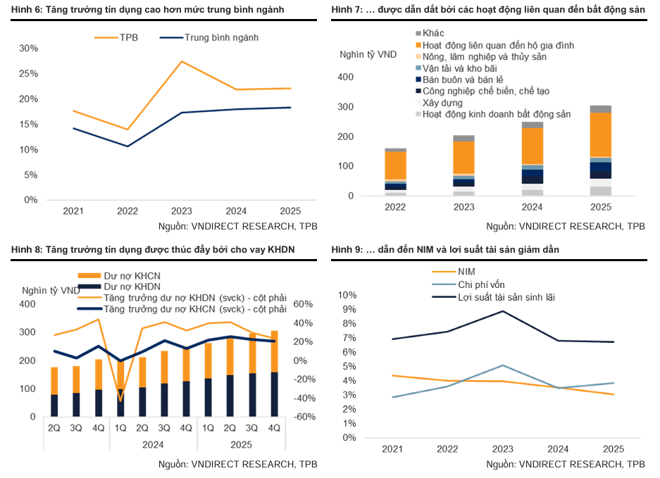 Tăng trưởng tín dụng của TPBank trong quý đầu năm 2026 dự kiến đạt khoảng 2.5%, thấp hơn so với mức tăng trưởng cùng kỳ năm trước do quan điểm thận trọng trong việc giải ngân vào các lĩnh vực rủi ro cao.