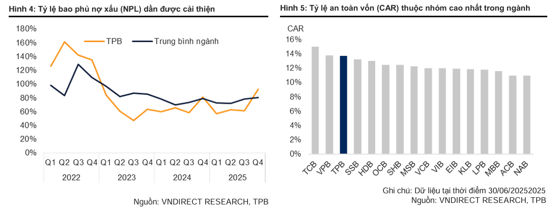 Để đối phó với tình trạng này, TPBank đã đẩy mạnh việc khai thác nguồn vốn giá rẻ thông qua tỷ lệ tiền gửi không kỳ hạn (CASA). Nhờ vào sự tiện dụng của ứng dụng ngân hàng số và các chương trình khuyến mãi tích hợp trên hệ sinh thái thương mại điện tử, tỷ lệ CASA của ngân hàng được kỳ vọng sẽ duy trì ở mức quanh 23%, góp phần giảm nhẹ áp lực lên chi phí vốn bình quân.