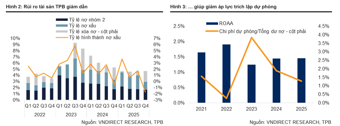 Chất lượng tài sản là yếu tố được TPBank ưu tiên hàng đầu trong kế hoạch kinh doanh năm 2026. Sau khi đạt đỉnh nợ xấu vào năm 2023 ở mức 2.1%, ngân hàng đã thực hiện các biện pháp quyết liệt để đưa tỷ lệ này giảm xuống 1.3% vào cuối năm 2025 và đặt mục tiêu tiếp tục kéo giảm xuống mức 1.2% vào cuối năm 2026.