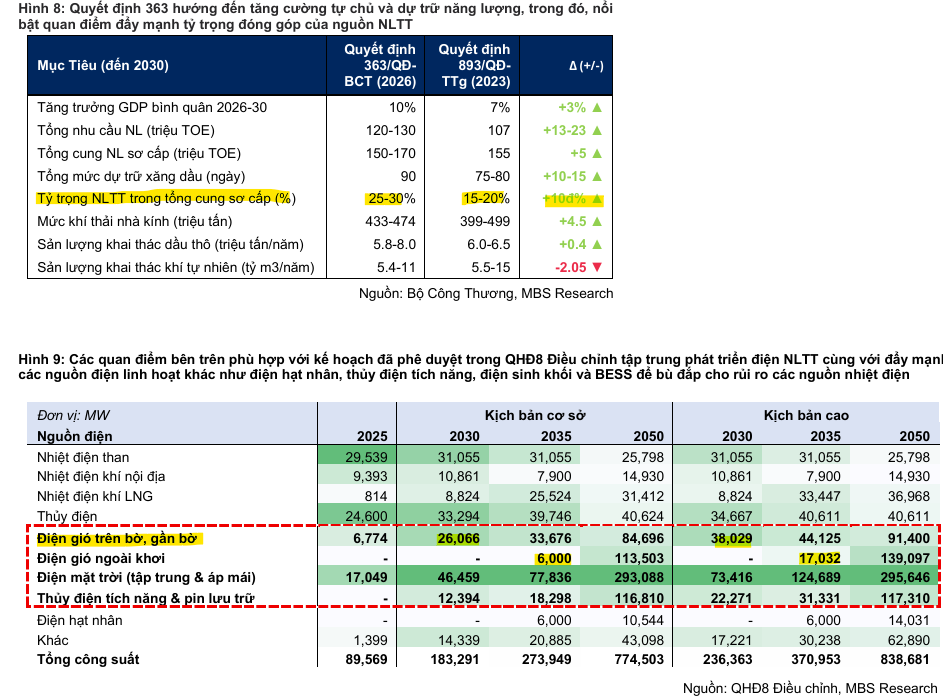 MBS tin rằng những vướng mắc về hành lang pháp lý cho cơ chế mua bán điện trực tiếp (DPPA) và khung giá NLTT sẽ dần được tháo gỡ, tạo đà cho một chu kỳ tăng trưởng mới.