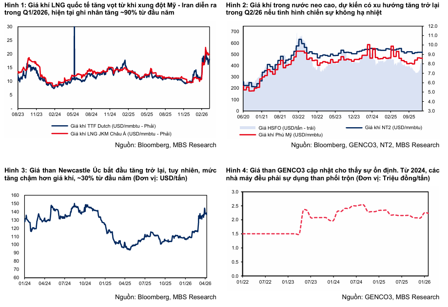 Đáng chú ý, giá thị trường điện cạnh tranh (CGM) vẫn duy trì ổn định quanh mức 1,100 đồng/kWh, giúp biên lợi nhuận của các nhà máy không chịu quá nhiều biến động tiêu cực dù chi phí nhiên liệu đầu vào như khí LNG và than nhập khẩu có xu hướng tăng nhanh do xung đột Trung Đông.