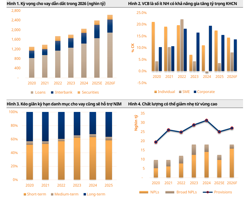 VCB: Triển vọng lợi nhuận quý 1 tăng 15% và khả năng trở lại tăng trưởng hai con số vào năm 2026 nhờ hoàn nhập dự phòng trái phiếu doanh nghiệp