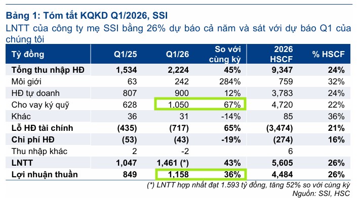 Trong quý 1/2026, HSC ước lãi trước thuế 356 tỷ đồng, tăng 26% nhờ sự xoay trục chiến lược: rút toàn bộ gần 4,000 tỷ đồng tự doanh cổ phiếu bluechip để chuyển hướng nguồn vốn sang hoạt động cho vay margin và trái phiếu.
