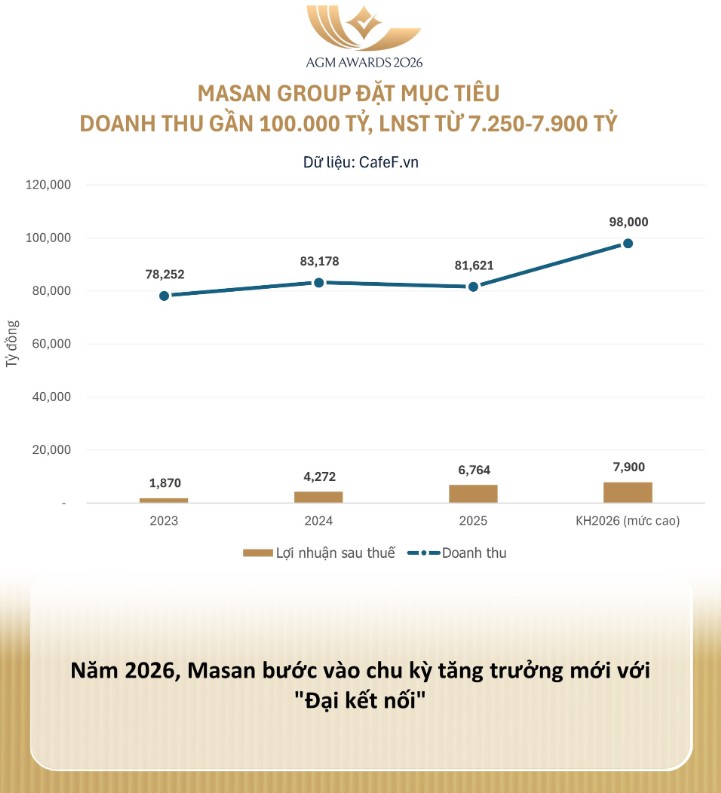 Đến cuối năm 2026, tập đoàn dự kiến sẽ vận hành khoảng 6,100 cửa hàng, với tốc độ mở mới tối thiểu 1,500 điểm bán mỗi năm. Khi đạt tới quy mô này, Masan kỳ vọng doanh thu của mảng bán lẻ sẽ chạm mức 120,000 tỷ đồng với biên lợi nhuận ròng đạt 6%, từ đó củng cố định giá 10 tỷ USD cho WinCommerce và khẳng định vị thế là chuỗi bán lẻ lớn nhất Đông Nam Á.