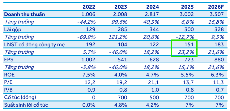 Công ty hoãn kế hoạch tăng vốn 1,000 tỷ đồng do cấu trúc tài chính lành mạnh (nợ vay/vốn chủ sở hữu chỉ 40%, thấp hơn trung bình ngành 109%), tiếp tục duy trì cổ tức tiền mặt 7%, và được ACBS khuyến nghị MUA với giá mục tiêu 13,700 đồng/cp cuối năm 2026.